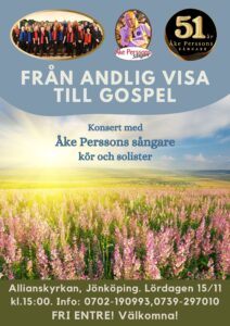 7 oktober, 20259 oktober, 2025 Från andlig visa till Gospel lördagen 15 november kl 15.00 i Allianskyrkan, Jönköping Aktuellt